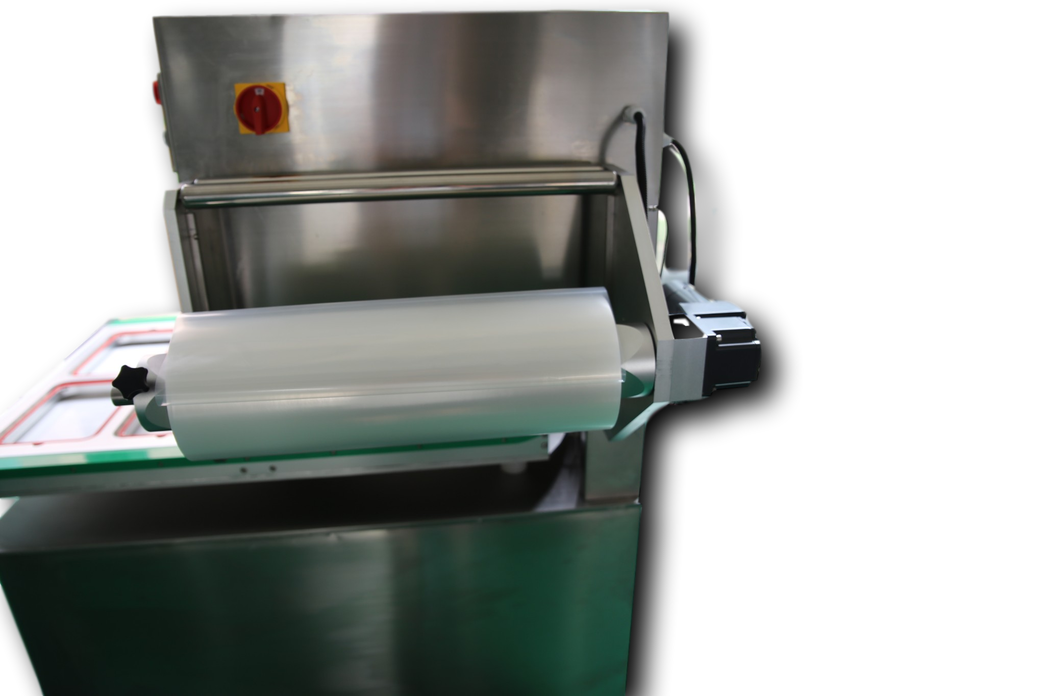 机器模具可按照客户要求进行定做,根据托盘尺寸,一个循环可同时密封多个托盘,该机每分钟行4-6个循环,速度快,产量高,节省人工和成本