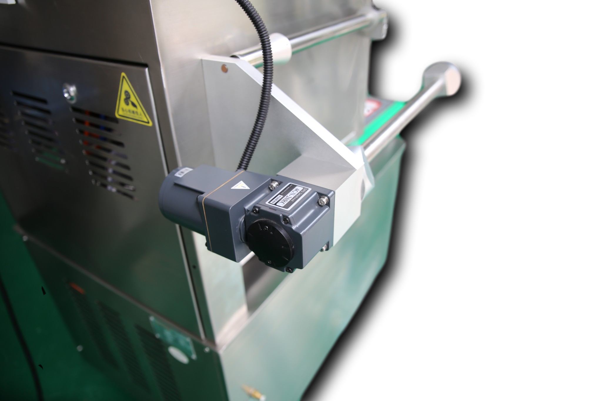 机器特点: 该机设计新颖,它是一个旋转式机器,不仅操作简便,密封性好,速度快,而且机器不会出现死机情况。本机配有可编程控制器和彩色触摸屏欧姆龙7.2,可密封PP,PET,CPET等托盘;该机模具更换速度快,只需3~5分钟就可以完成,经济实惠; 该机带有自动走膜;电子零部件产自西门子品牌,气动元件是日本SMC品牌。