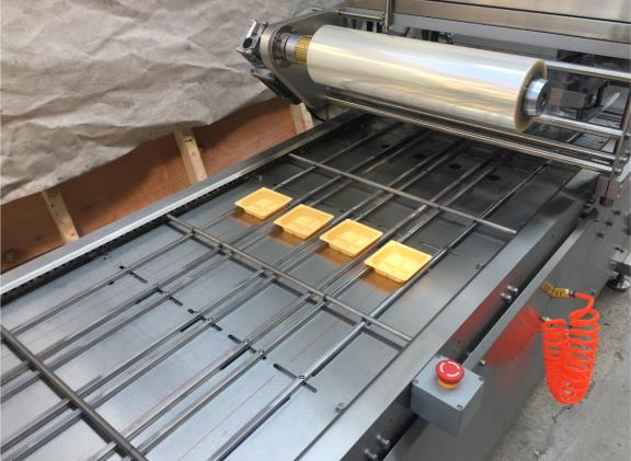 适用于快餐盒、熟食托盘、速冻食品托盘、点心盒、方便食品、豆腐盒、外卖盒、饼干盒、豆掰酱等盒装等包装容器的自动热合封口。、